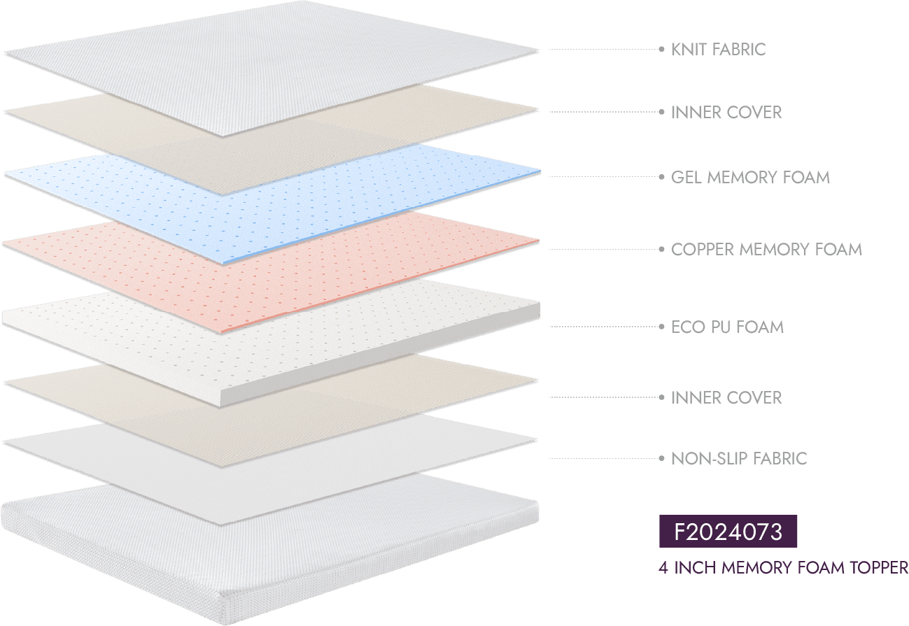 EON TOPPER F2024073 4 INCH MEMORY FOAM TOPPER GEL MEMORYFOAM COPPER MEMORYFOAM ECO PUFOAM UNCOVER WHAT'S INSIDE OUR EON MATTRESS RELATED PRODUCTS F2024069 F2024071 F2024072 F2024074